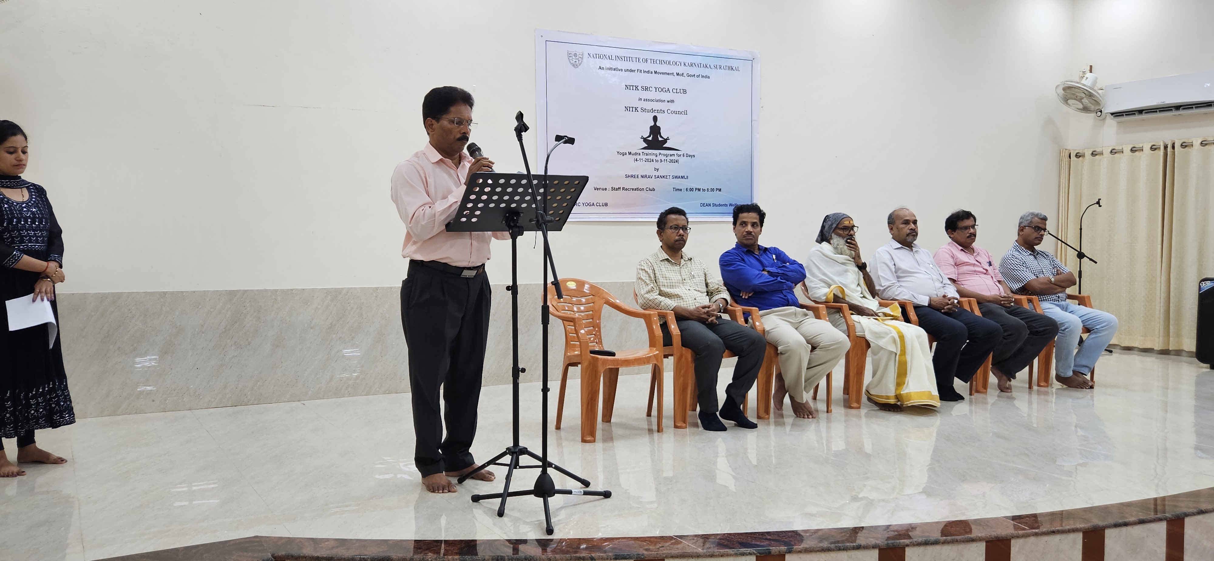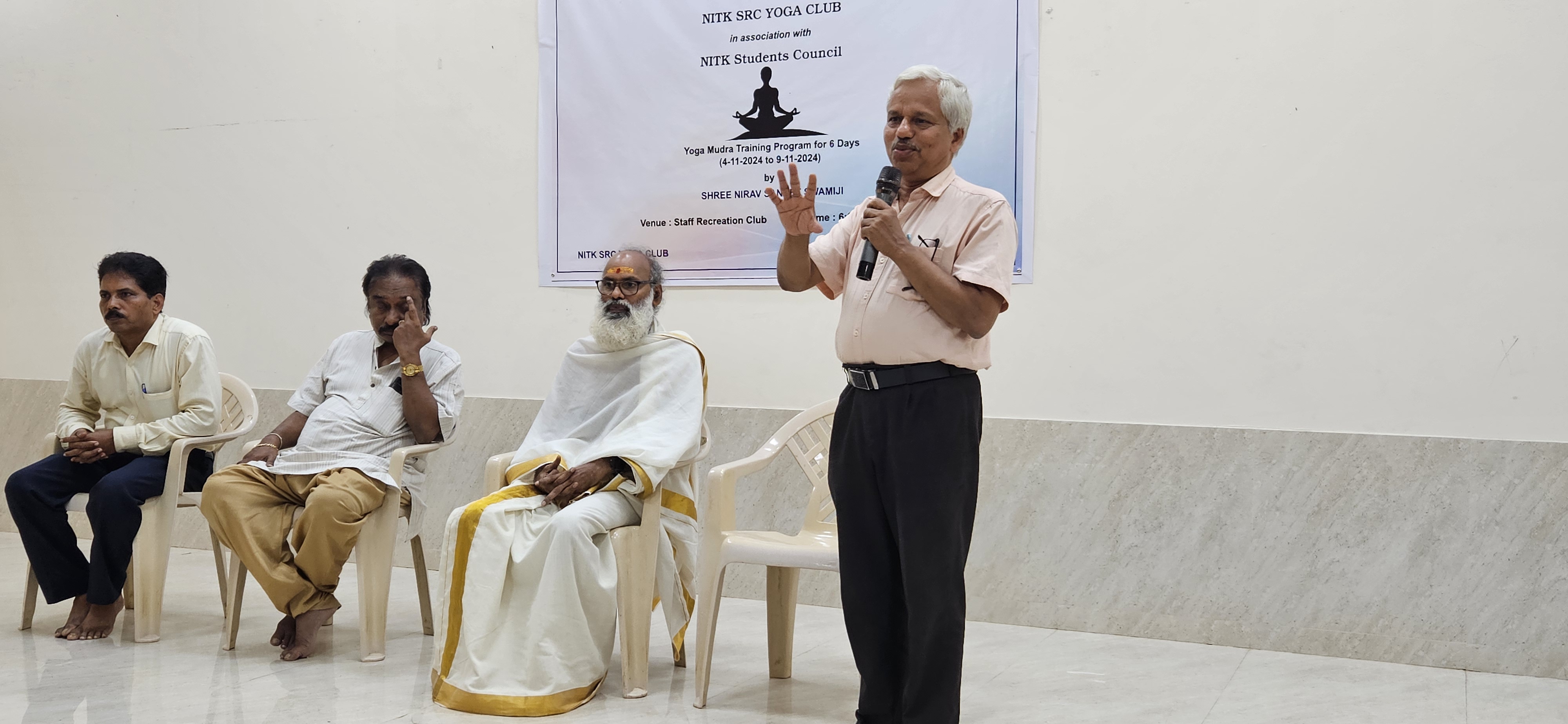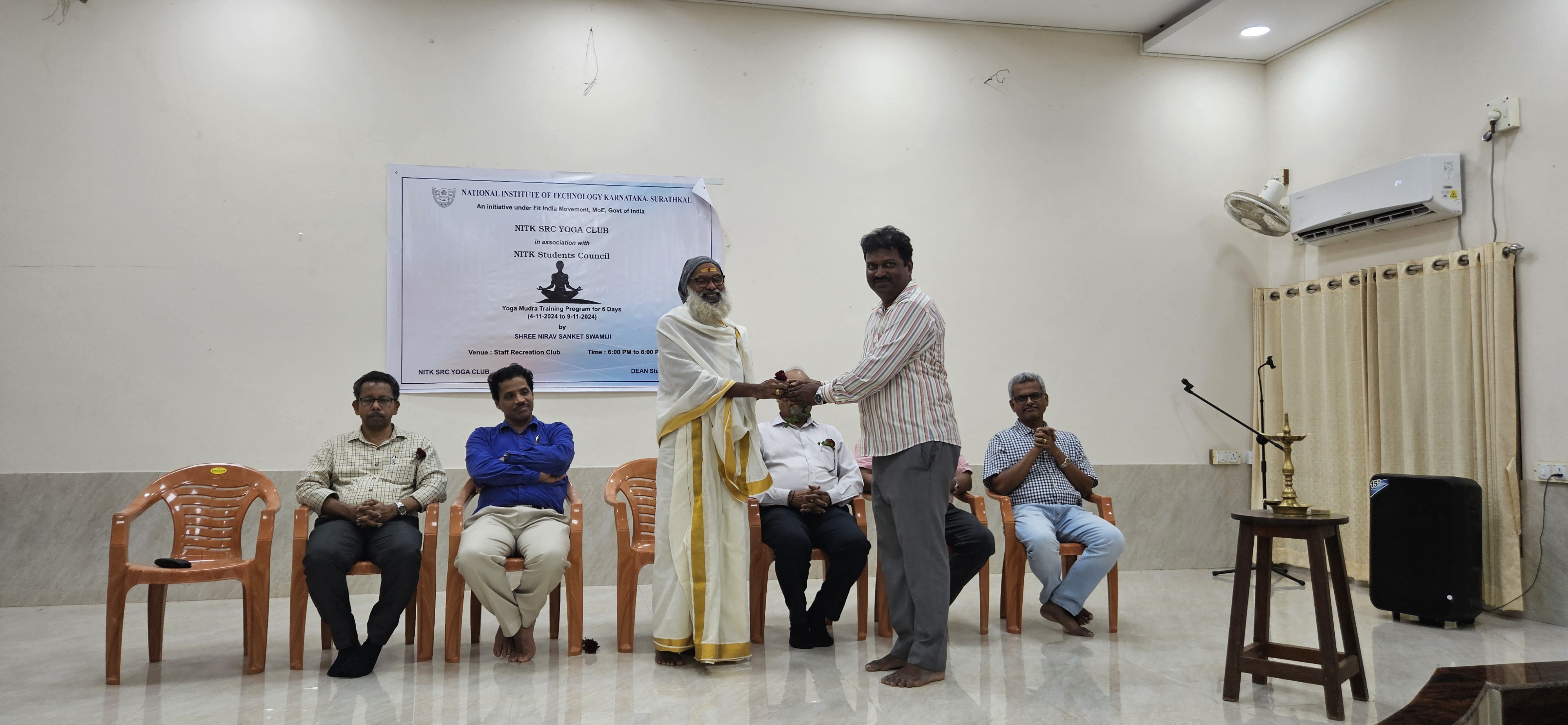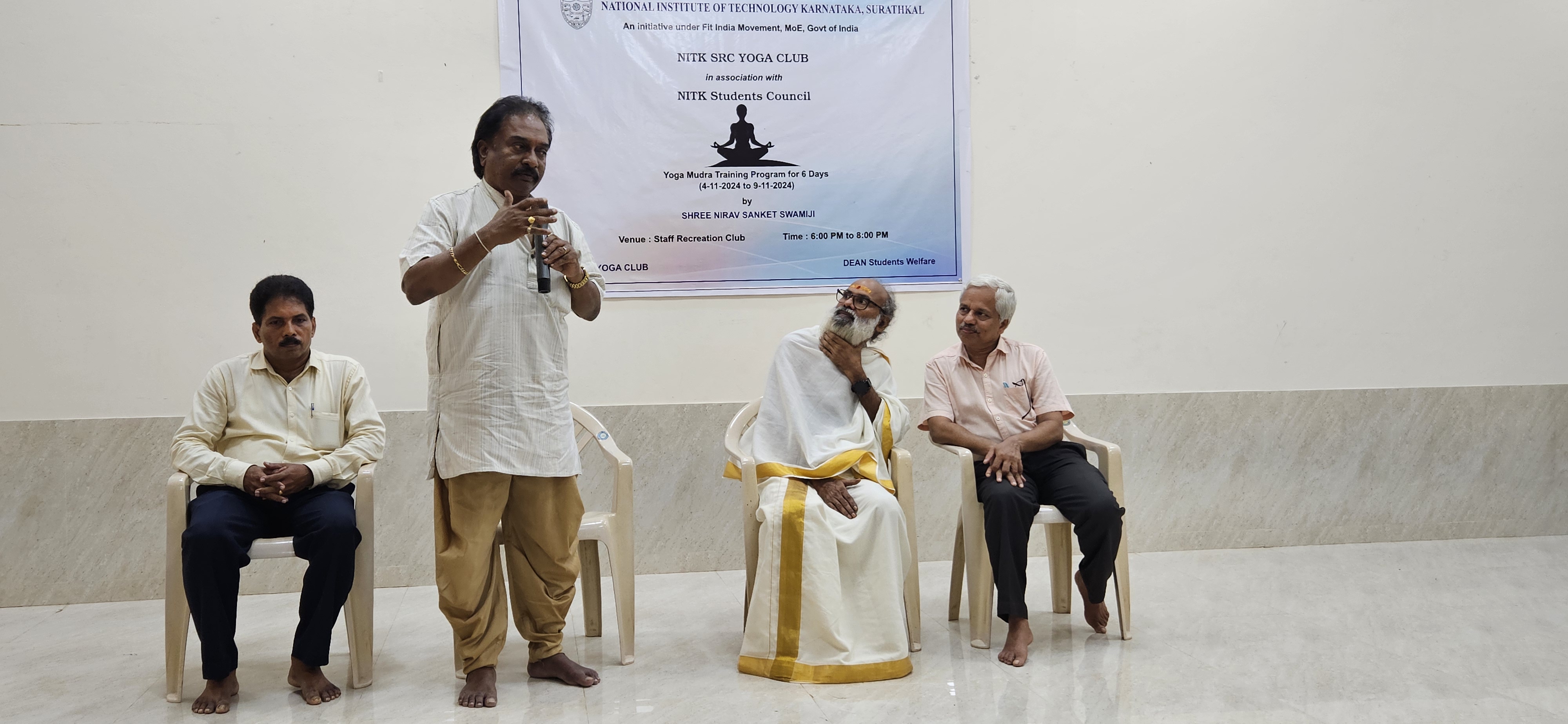 NITK SRC successfully organized four transformative 7-day Yoga Mudra camps, fostering holistic well-being and mindfulness. The esteemed Shree Neerava Swamiji from Dharmasthala graced the camp as the resource person, guiding participants through profound practices aimed at cultivating a balanced and healthy lifestyle.