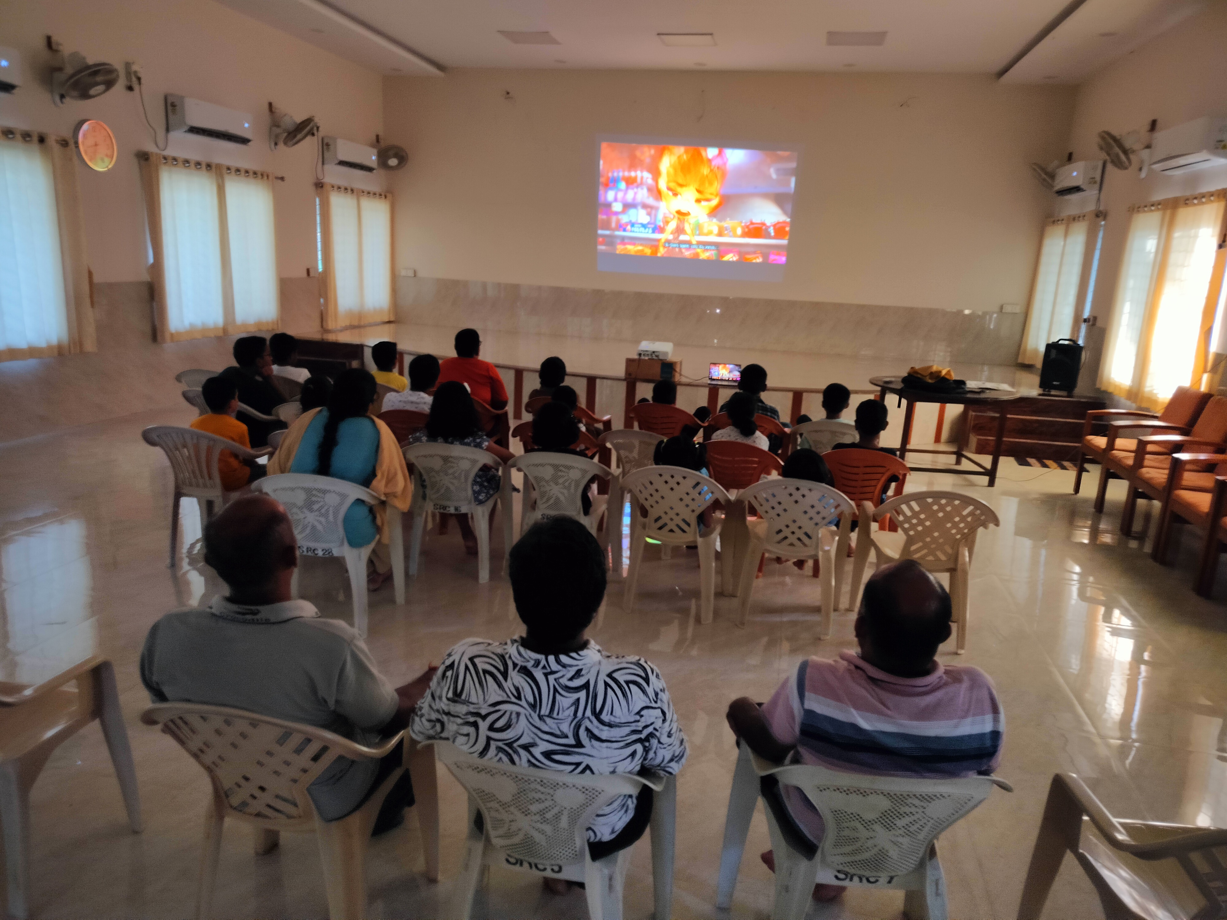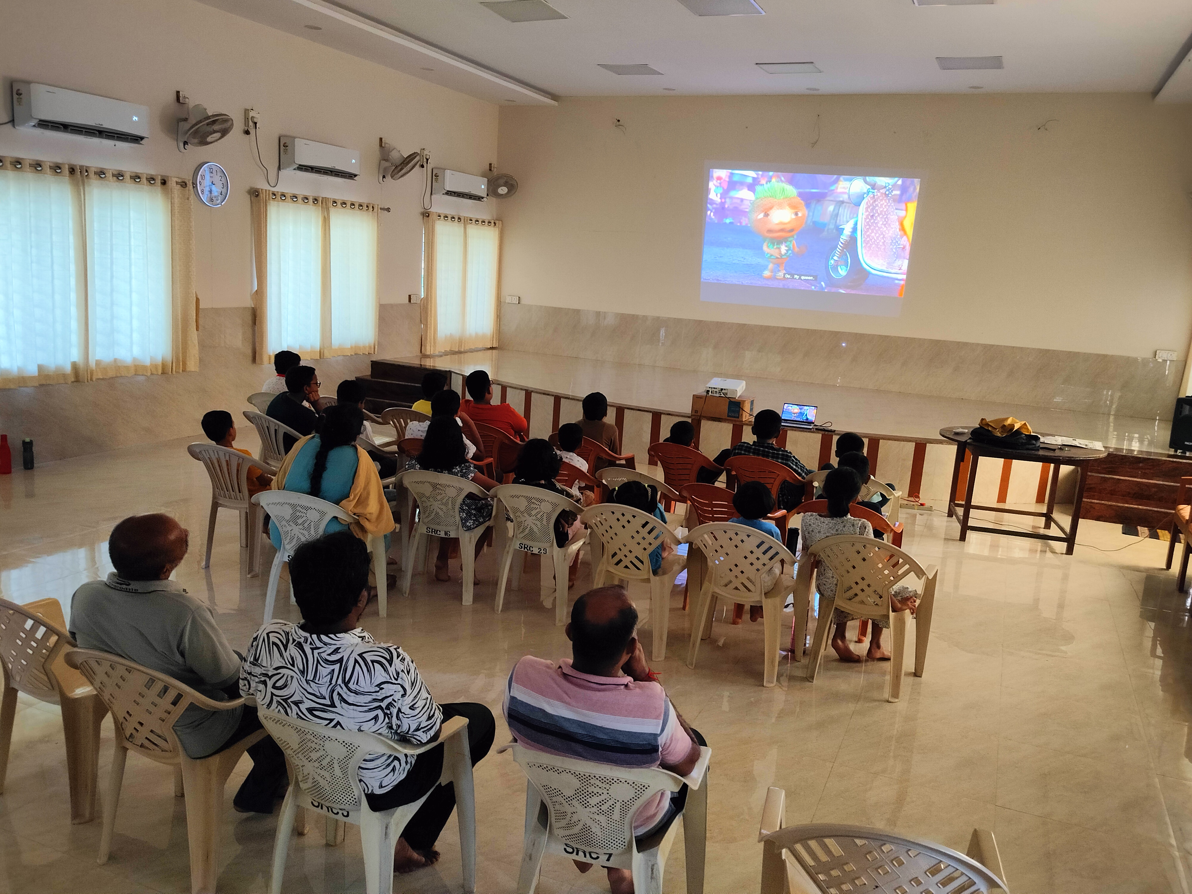Several Children’s movies were screened during weekend to keep the campus children occupied. A display board has been installed for this purpose recently. With that in place, we shall continue with community viewing of not just films, and documentaries but also cricket matches and other sports.